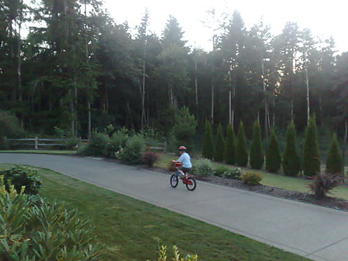 Jaden can finally ride his bike without training wheels. Getting started is a little rough and we have forgotten how to steer. Just keep peddling, Jaden.